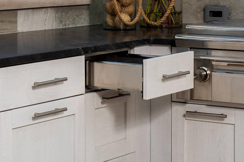 The Key West is a five-piece stainless steel construction shaker-style door. It features two 11/16″ wide stiles and rails. Since the doors are assembled after each component is painted, the center panel can be painted to match or complement the stiles and rails. Meld the comforts of your home’s interior with the natural beauty of outdoors by choosing timeless stainless steel Trex Outdoor Kitchens. Accentuate your unique lifestyle with customized cabinetry and colors that create a functional yet luxurious space.